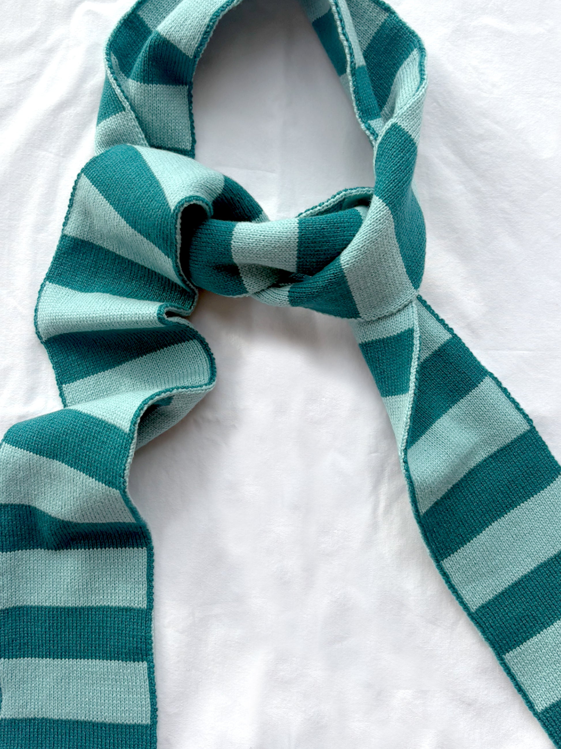 Wool and Cashmere Skinny Scarf with Stripes in Blue and Teal